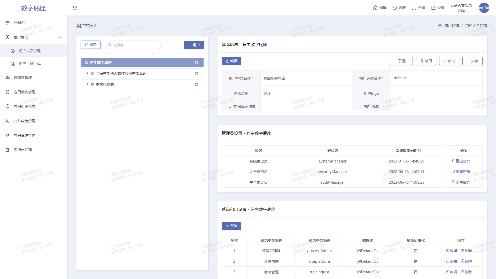 多租戶模式服務與政府單位和大型國央企,支持多級管控,權限下放。云模式以多租戶為底層,支持線上租賃服務模式開展自身業(yè)務,高效便捷。